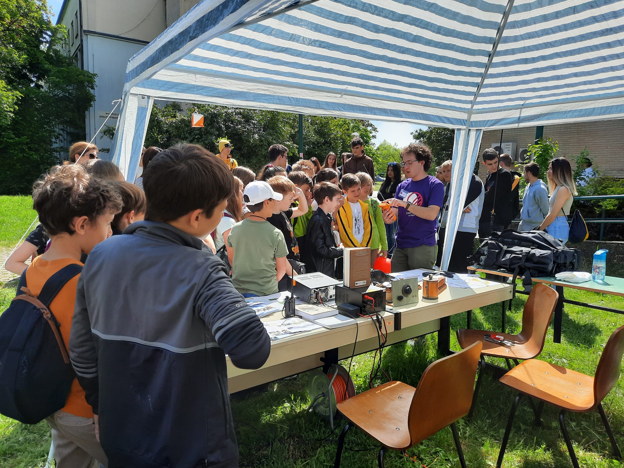 U petak, 5. svibnja 2023. je Hrvatski radioamaterski savez u sklopu projekta Dan i noć na PMF-u, na Odjelu za fiziku, a u suradnji s Radioklubom Zagreb i uz pomoć ZARS-a prezentirao radiokomunikacije osnovnim i srednjim školama iz čitave Hrvatske. Naš štand je posjetilo oko 700 učenika. Saznali su osnove o radioamaterizmu, a mnogi su isprobali radiogoniometriju i okušali se s veseljem u potrazi za blagom. Prezentiran je i Savezov projekt Mladi u eteru za što su i učenici i nastavnici pokazali interes. Neke nove suradnje se očekuju ubrzo. Posebna zahvala radioamaterima Ines Mance 9a3ins i Draženu Paunoviću 9a7dp, zaposlenicima Fizičkog odsjeka PMF-a u Zagrebu zahvaljujući kojima su se radioamateri i radiokomunikacije našli u ovom projektu. Zahvala i PMF-u koji nas je lijepo ugostio. Veselimo se ponovnoj akciji na PMF-u!